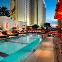 We chillin by the pool at the old skool Golden Nugget hotel. There is a huge shark tank that you can swim all the way around, and a water slide that goes right through it.