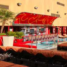 It costs $20 for non-guests of the hotel, but RSVP with Messmaster to get in free. We'll meet at the entrance at 11:00am. The pool is open until 6pm. Bring ya sunblock!